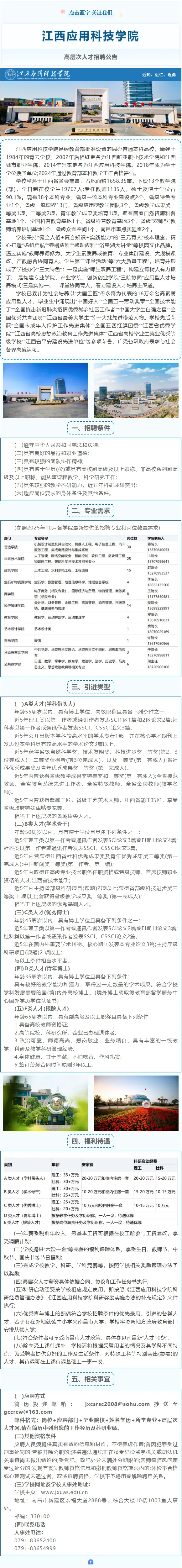 >招聘信息丨江西应用科技学院高层次人才招聘公告