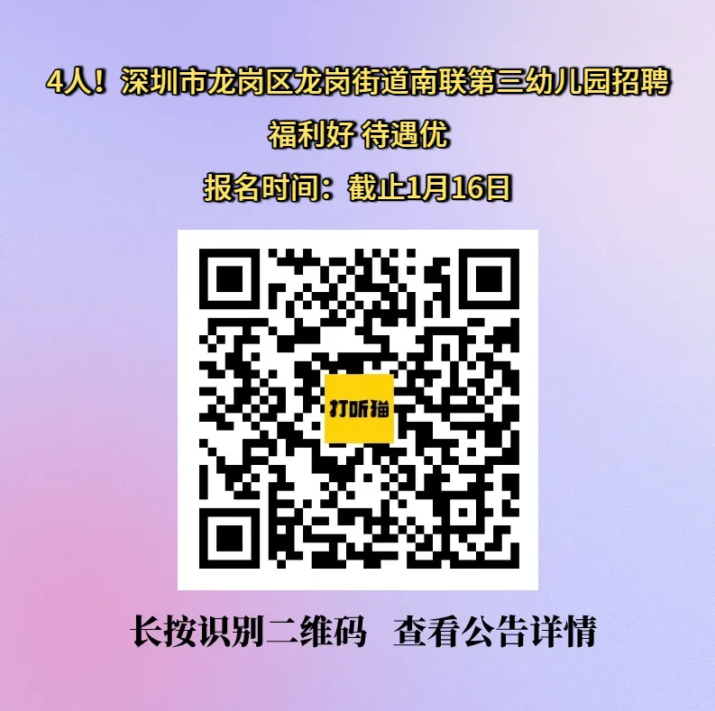 【深圳招聘】4人!深圳市龙岗区龙岗街道南联第三幼儿园招聘!