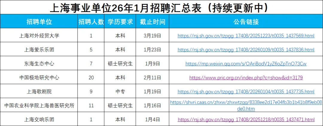 备注:上述岗位的报名者如为外省市社会人员,须持有上海市居住证一年以上(在有效期内),计算截止时间为2026年1月19日。