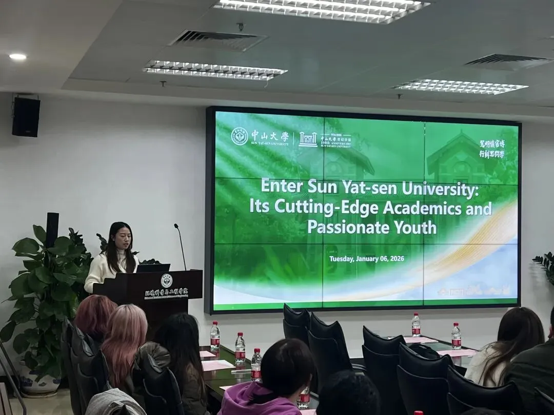 座谈环节,我院研究生代表郝思迪系统地介绍了中山大学的办学历史、校区布局、学科体系、我院人才培养体系及目标,清晰勾勒出学校及我院的学术发展脉络与育人框架;本科生代表郭思源结合自身学习生活经历,分享了在我院的课程学习、科研训练、校园活动等见闻,生动展现了我院本科育人特色与学习氛围。随后双方围绕人才培养、学术研究体系等话题进行了深入交流。