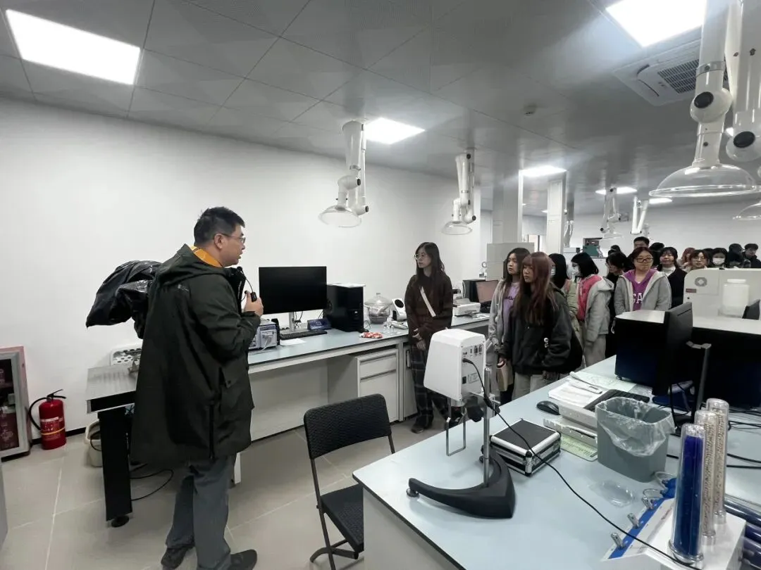 实地考察环节,在赵曼老师、王文斌老师的细致讲解下,来访师生参观了我院多个教学与科研实验室,近距离观摩高精度质谱仪、色谱仪、序批式反应器系统等先进仪器设备,详细了解了我院实验室安全管理规范、仪器预约共享平台等情况。参观过程中,两校师生就仪器原理、应用场景及实验技术细节频繁互动探讨,为学生搭建了专业交流平台,深化了对学科实验技术的认知。