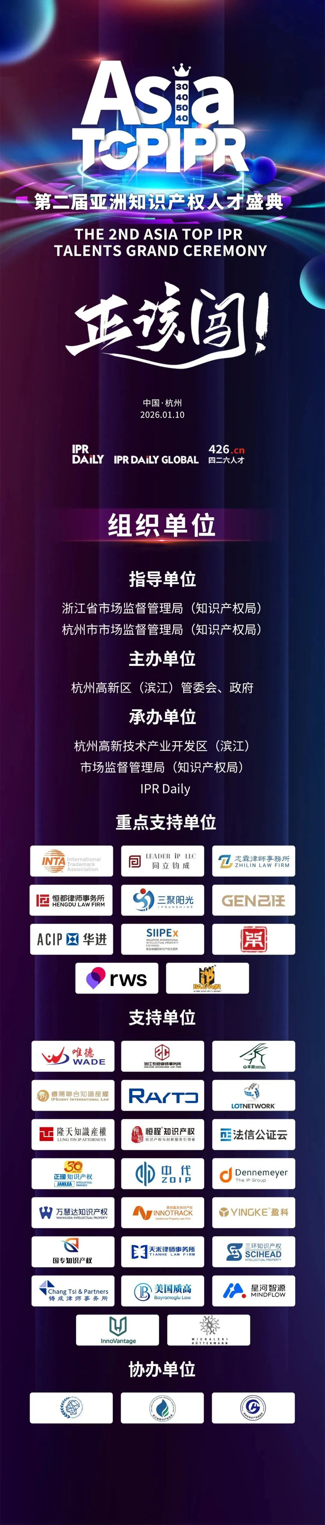 INTA、同立钧成知识产权集团、北京志霖律师事务所、北京恒都律师事务所、北京三聚阳光知识产权服务集团有限公司、己任律师事务所、华进联合专利商标代理有限公司、新加坡国际知识产权交易所、中策知识产权研究院、RWS、印度IP BAZZAAR