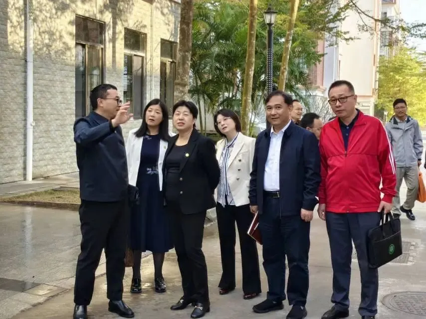 上午九时,许玫书记一行抵达我校。在杨国孝校长、程先进校长的陪同下参观了校园。杨校长详细介绍了学校的整体布局、办学设施以及校园文化建设情况,重点走访了教学楼、教师宿舍、学生食堂等场所,海南师范大学的领导们对我校优美的校园环境、完善的教学设施和富有特色的育人氛围给予了高度评价。