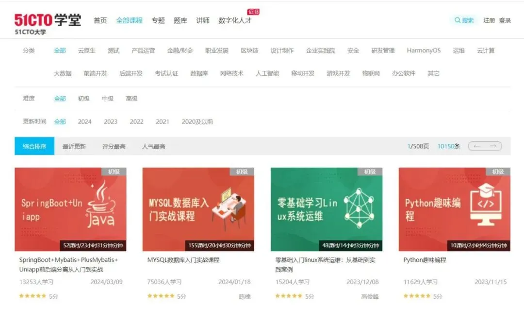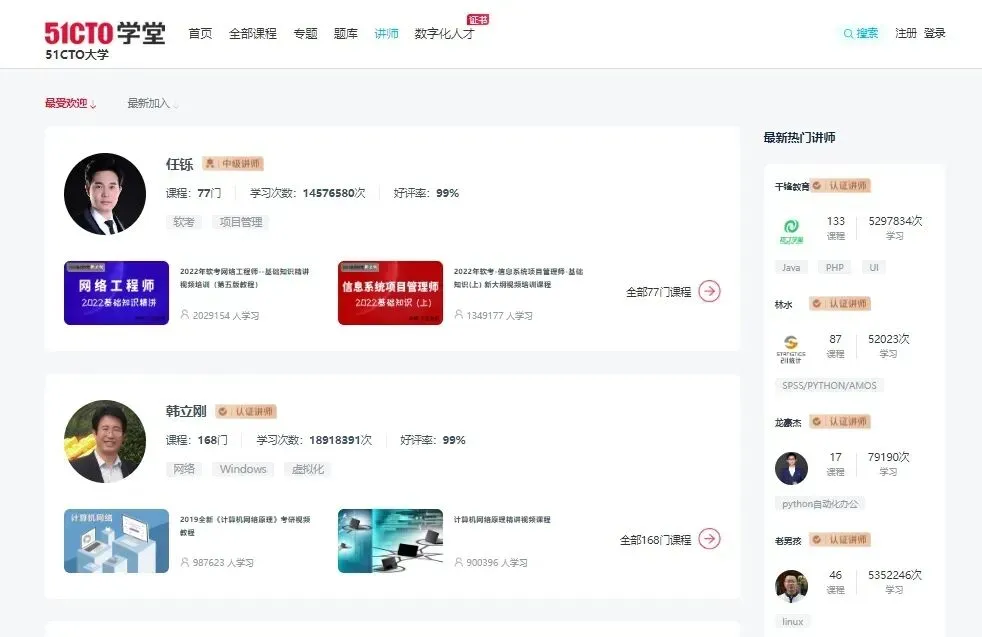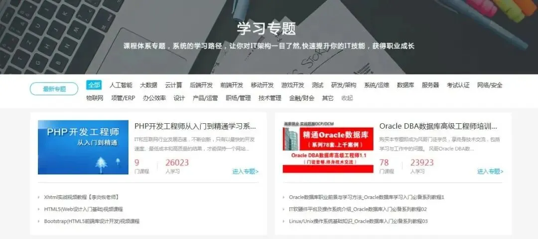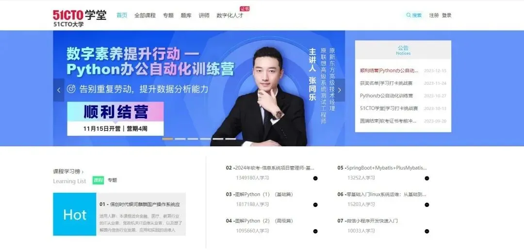 “51CTO学堂”数字化人才学习平台,可以提供优质、专业并极富实战应用性的信息技术课程,课程覆盖众多领域主流技术操作技能,更有丰富的专题、题库等学习资源等你来发现!