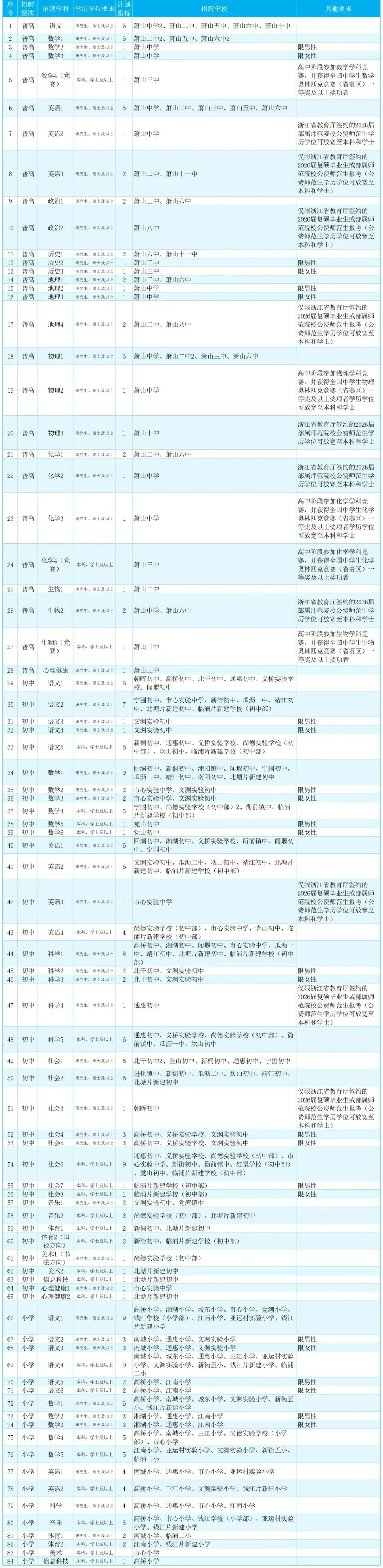 杭州市萧山区面向2026届高校毕业生提前批