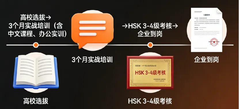 经过系统培训后,人才中文水平可达 HSK 3-4 级,能够熟练应对基础办公沟通、文件读写、日常对接等工作场景,完美匹配助理、行政、文员等办公室基础岗位的中文需求。