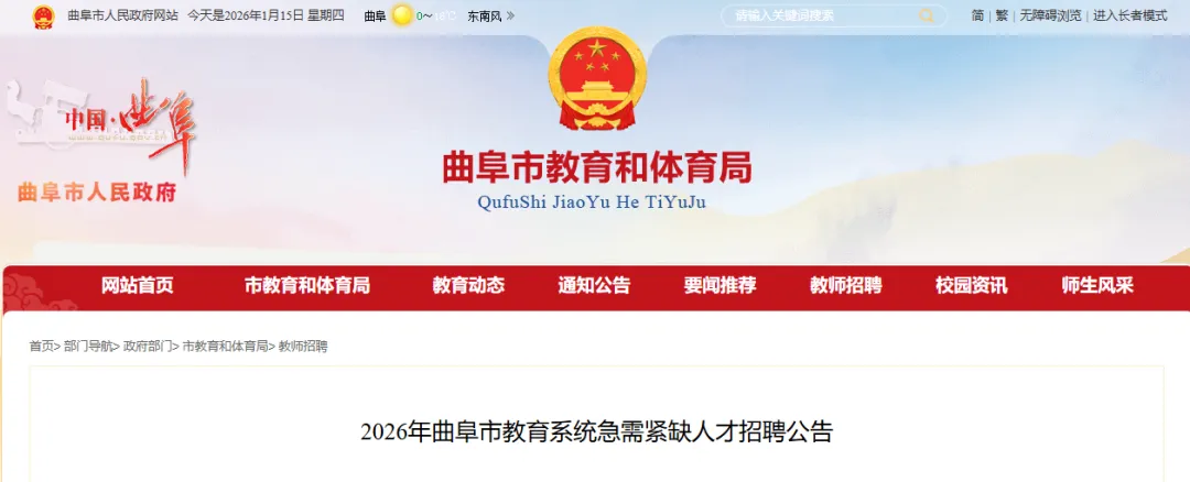 为落实国家和山东省关于2026年应届高校毕业生就业工作有关政策,结合教育教学需求,曲阜市教育系统拟招聘10名2026年应届高校毕业生。现将有关事宜公告如下: