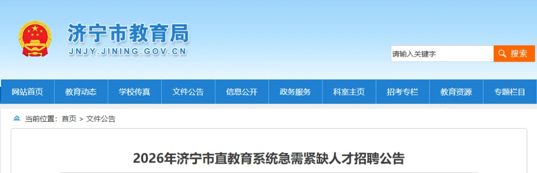 此次急需紧缺人才招聘工作的有关通知、公告、公示等相关信息,将在济宁市教育局网站发布,请应聘人员务必及时关注相关信息。因本人原因错过重要信息而影响聘用的,责任自负。