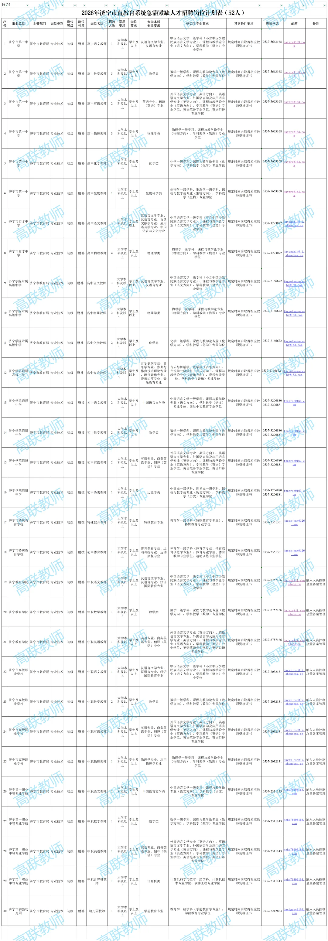 详见《2026年济宁市直教育系统急需紧缺人才招聘岗位计划表》(附件2)。