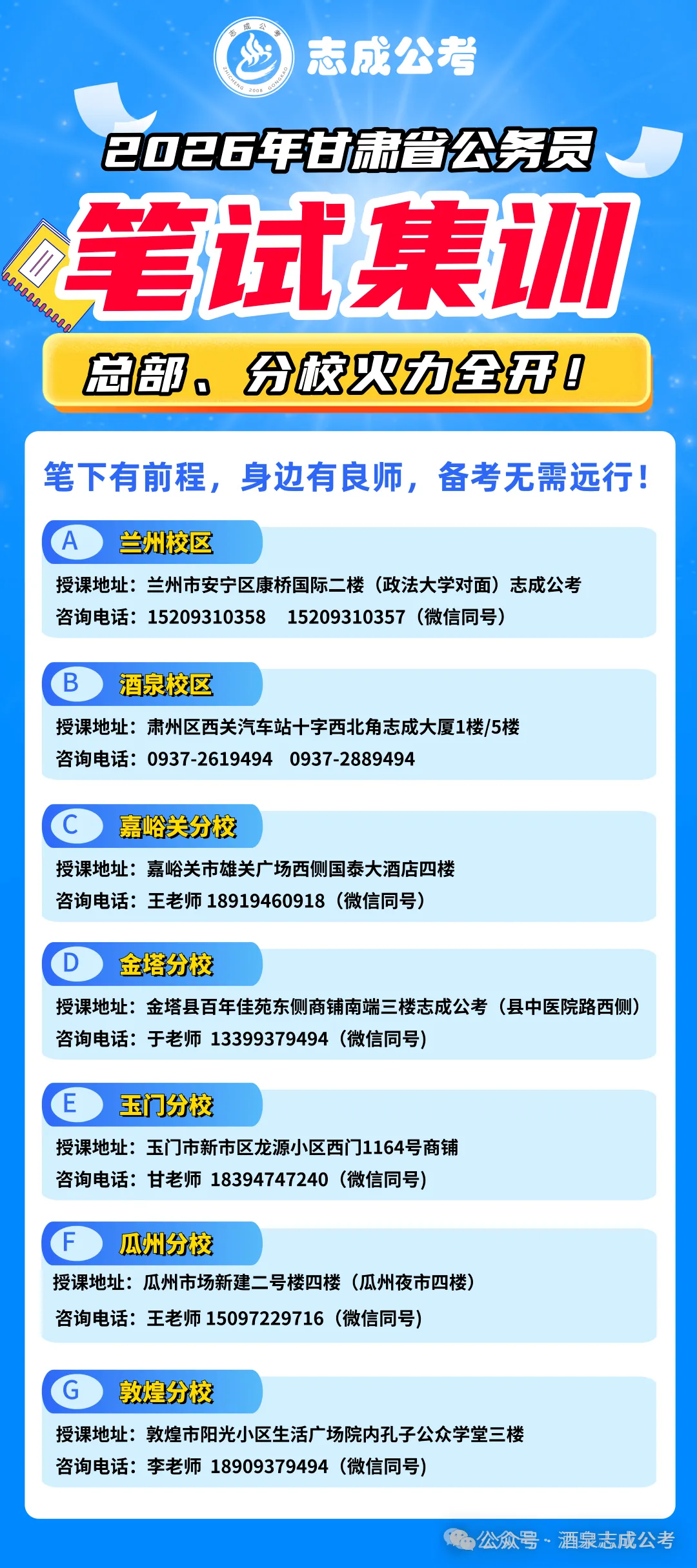 肃州区:肃州区教育局四楼409室(肃州区建设路8号);