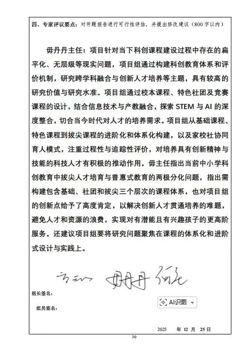 评价体系不完善 | 以比赛获奖、作品展示为主,忽视探究过程评价 | 设计基于项目作品的表现性评价量表,覆盖探究、合作、表达、建模四大维度 |