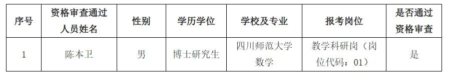 根据《六盘水师范学院2025年高层次人才引进方案》,经报名及资格审查,现将资格审查通过人员名单予以公示,公示期:2026年1月14日至2026年1月18日,如有异议,请向我校人事处反映。