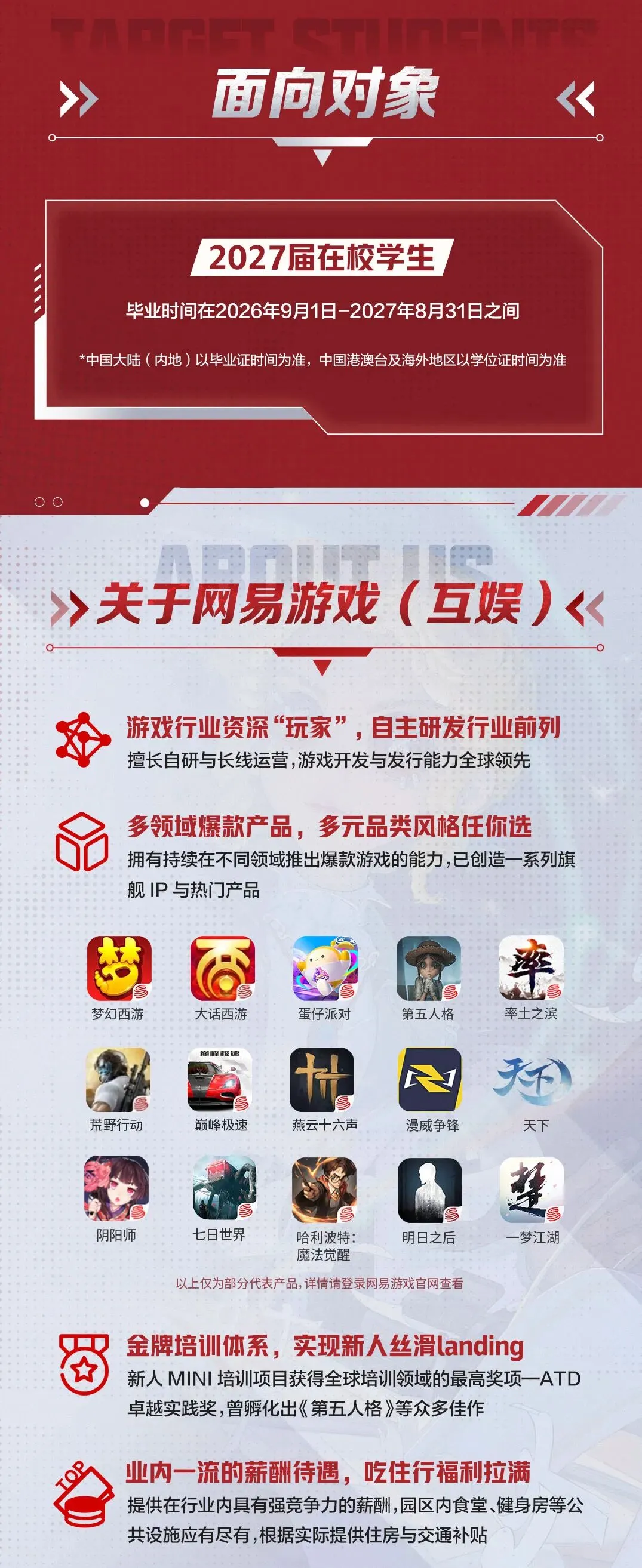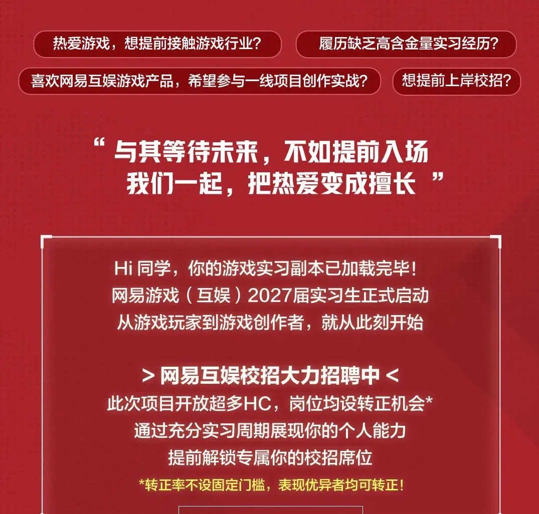 >招聘 | 网易游戏(互娱)2027届实习生招聘!
