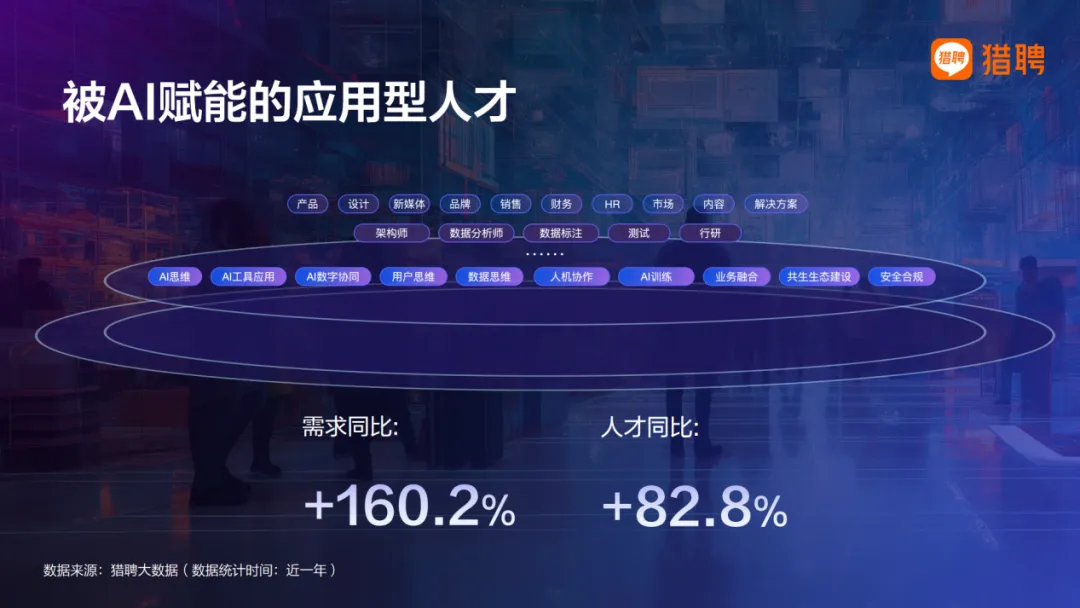 2024-2025年是中国人工智能产业从“技术爆发”迈向“深度落地”的转折年。本报告是猎聘大数据研究院基于猎聘平台亿级人才大数据及猎聘针对企业和职场人的调研,通过对AI人才的结构化演进、行业渗透路径、薪酬溢价逻辑及全龄化应用趋势进行系统化研究发现:AI已不再仅仅是一项孤立的技术技能,而是正在演变为职场底层的“通用生产力”。通过上述研究,本报告旨在为求职者与企业提供前瞻性洞察,揭示在这场全民参与的智能能力升级进程中,个体应如何构筑不可替代的竞争优势,组织又该如何构建面向智能时代的人才生态体系。