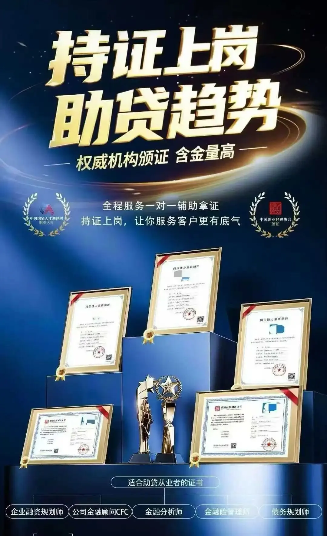 🔒条件:从事助贷行业均可报名,暂无学历/年限要求,难度不高,全程陪考,拿证更安心!