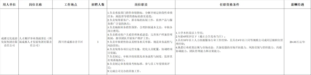 👉成都文化旅游发展集团有限责任公司下属企业关于市场化选聘中层管理人员的公告