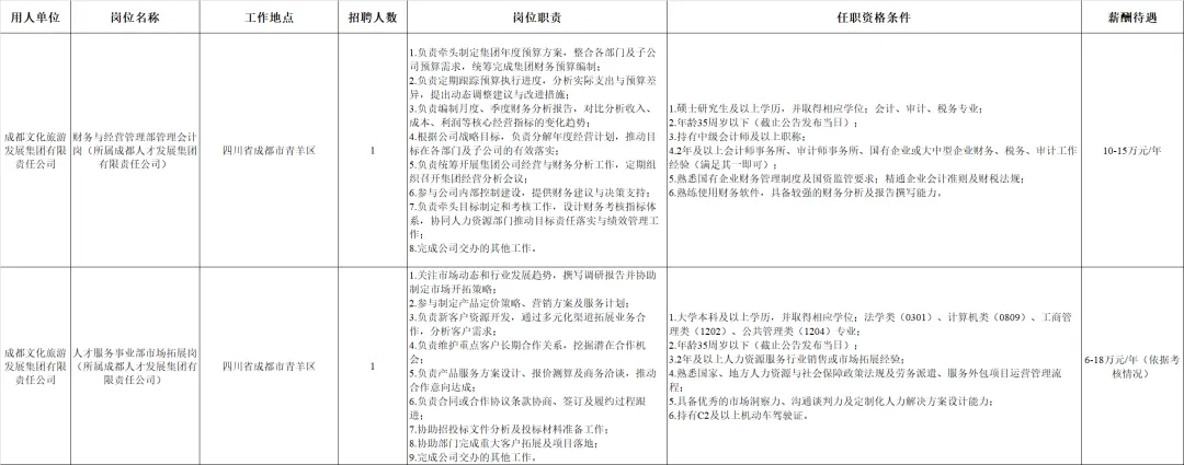 👉成都文化旅游发展集团有限责任公司下属企业关于2026年招聘管理会计岗等岗位的公告