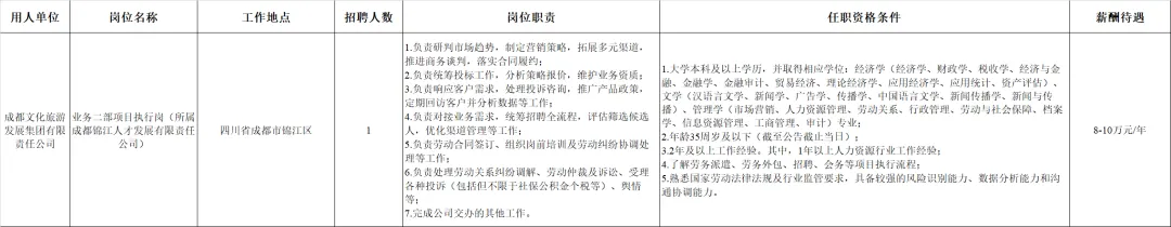 👉成都文化旅游发展集团有限责任公司下属企业关于2026年招聘项目执行岗等岗位的公告