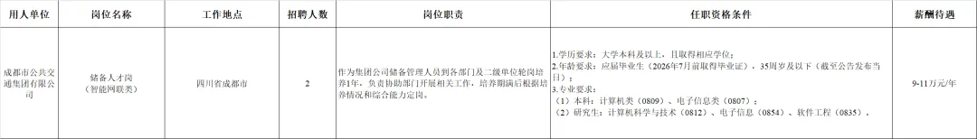 👉成都市公共交通集团有限公司关于2026年公开招聘储备人才岗位的公告