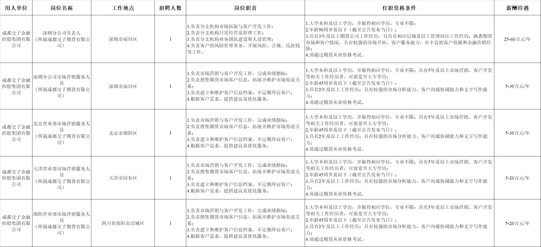 👉成都交子金融控股集团有限公司所属成都交子期货有限公司关于2026年招聘深圳分公司负责人等岗位的公告