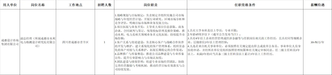 👉成都设计咨询集团有限公司关于2026年1月市场化选聘集团所属成都市水利电力勘测设计研究院有限公司副总经理的公告