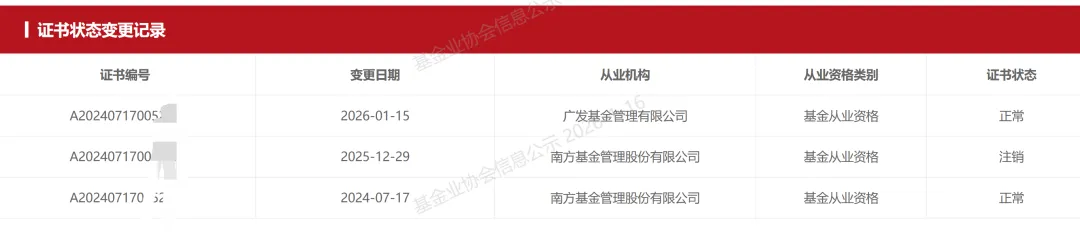 基金业协会官网显示,张某于2024年7月加入南方基金,从入职时间和经历看应是校招生,仅一年后就跳槽广发基金。具体原因不得而知了。