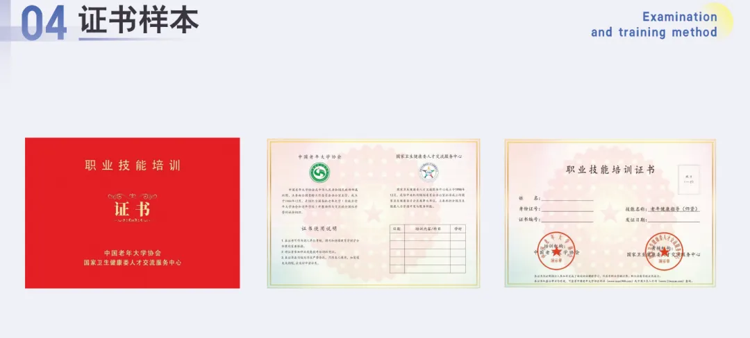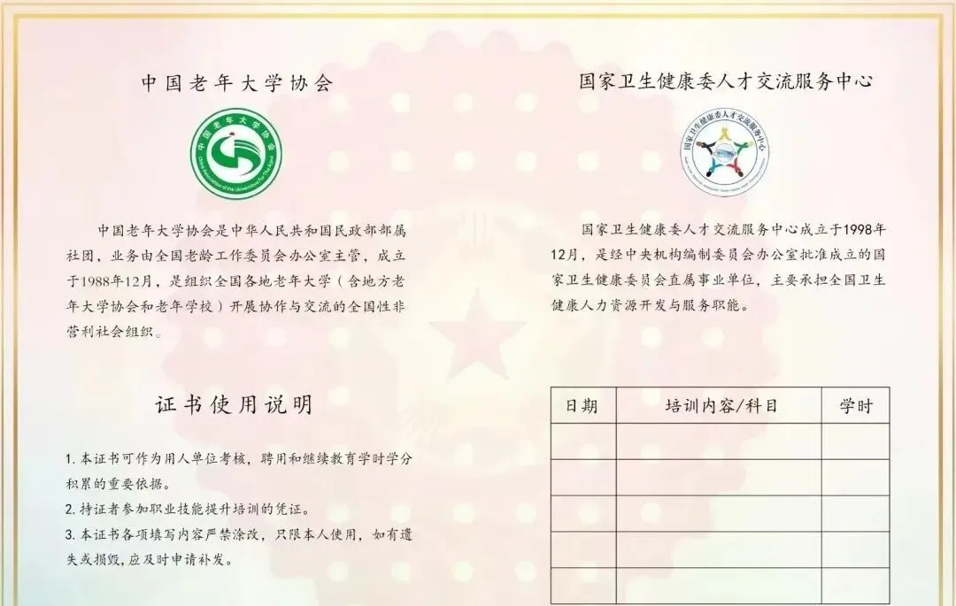 考核合格的,由中国老年大学协会、国家卫生健康委人才交流服务中心联合颁发“职业技能培训证书”,并在双方官方