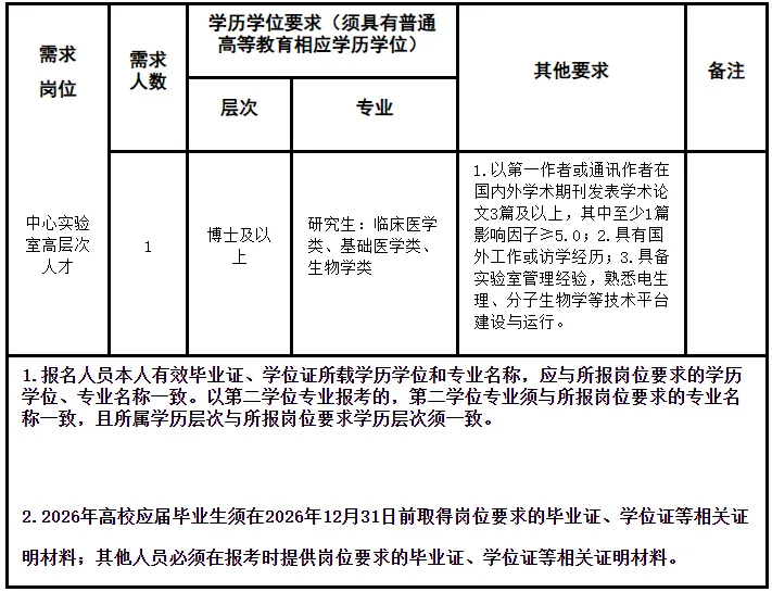 为进一步做好人才储备工作,强化人才队伍建设,深入推进医院学科建设与科研创新,打造高水平的医学研究平台,根据《巴中市市级公立医院员额管理实施办法(试行)》相关要求,结合工作需要,现面向社会招聘1名中心实验室高层次人才。