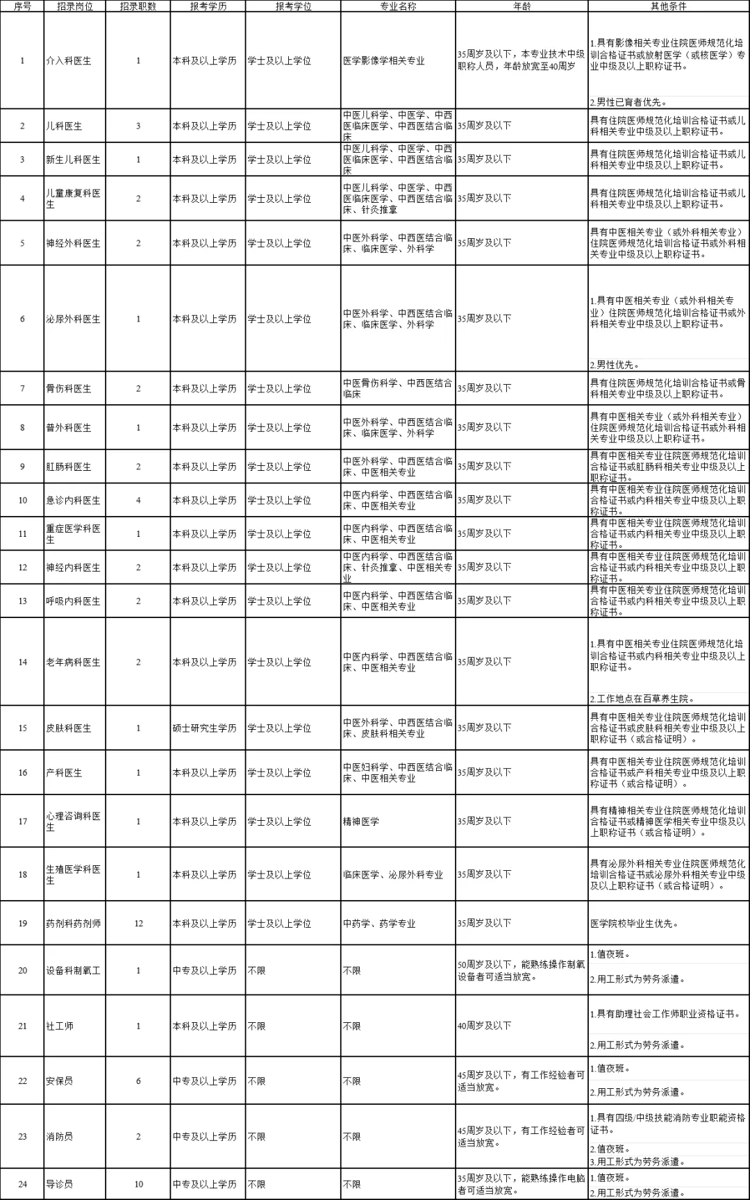 齐齐哈尔市中医医院是全省西部地区集中医、中西医结合医疗、保健康复、科研教学、医养结合、技术指导、咨询服务为一体,具有中医特色和优势的现代化大型综合性中医医院。医院科室设置齐全,技术力量雄厚,中医优势突出,专科特色明显,综合服务能力较强。因业务发展需要,依据《齐齐哈尔市中医医院招聘管理制度》,结合医院岗位需求实际,现面向社会公开招聘编外工作人员,具体公告如下: