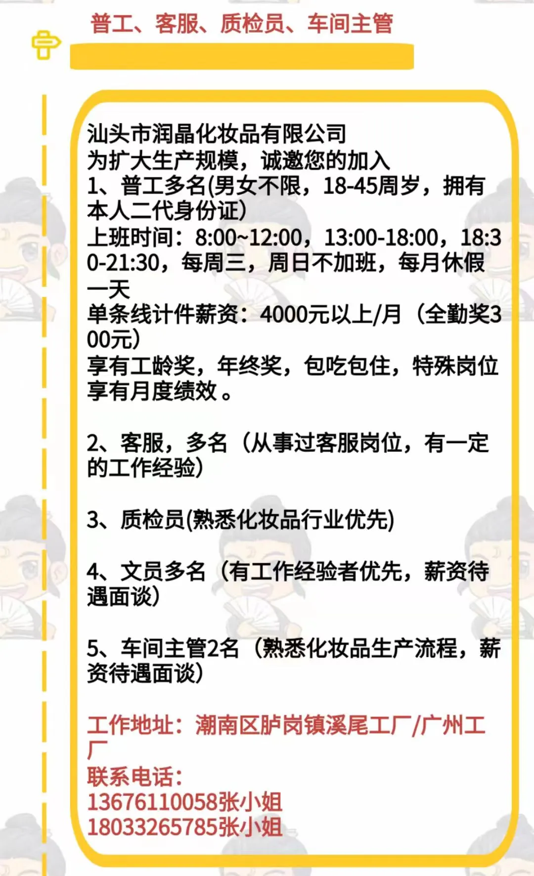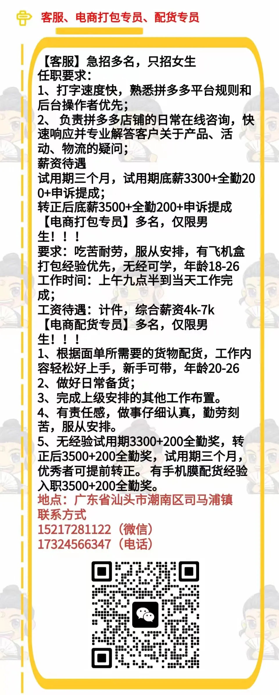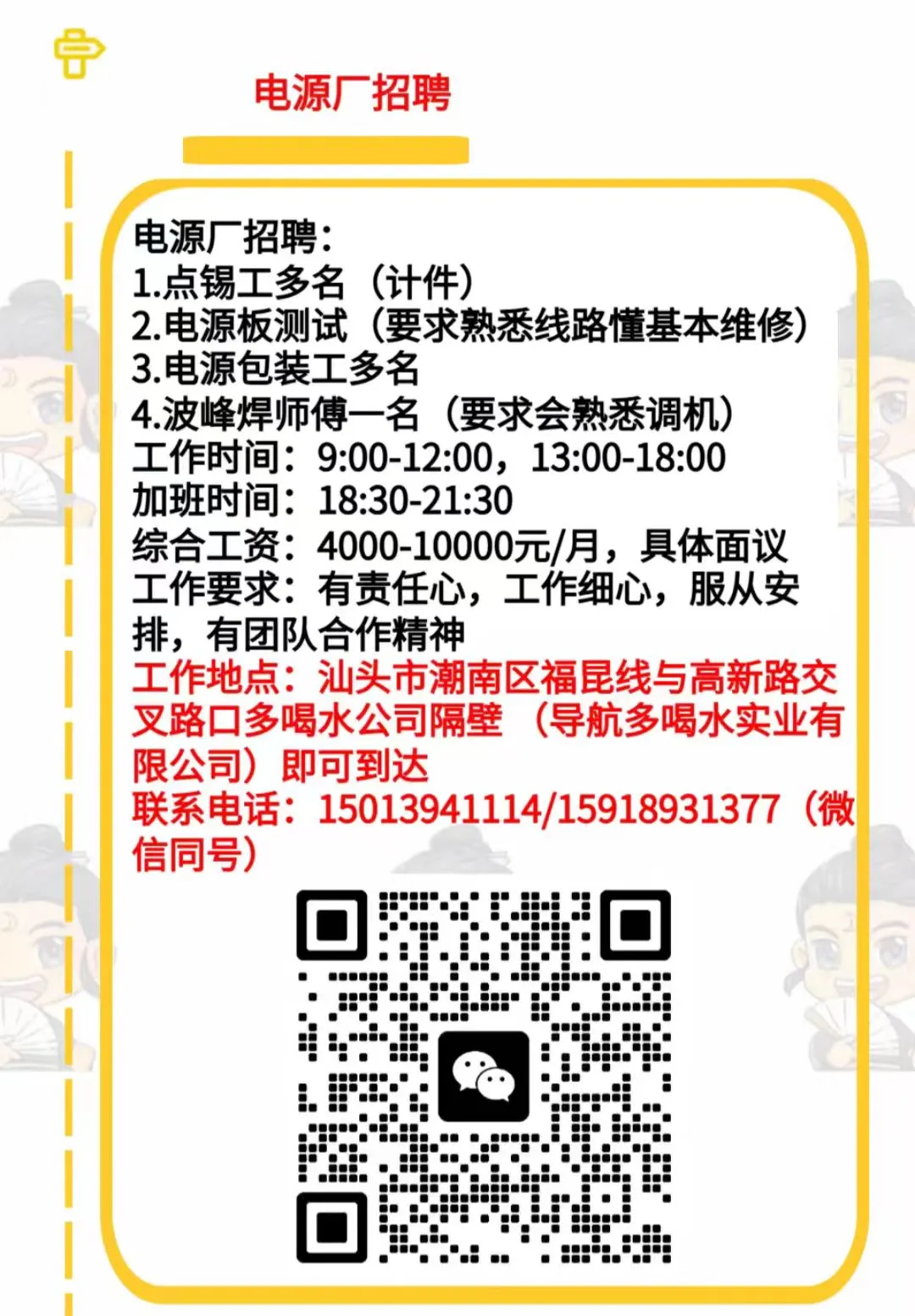 >1.17 潮南最新招聘!(新招电商带货主播(可兼职)待遇高60-100/小时电源厂、服务员、训练员、管理层、烫斗20名接侧骨封口加固定位...)