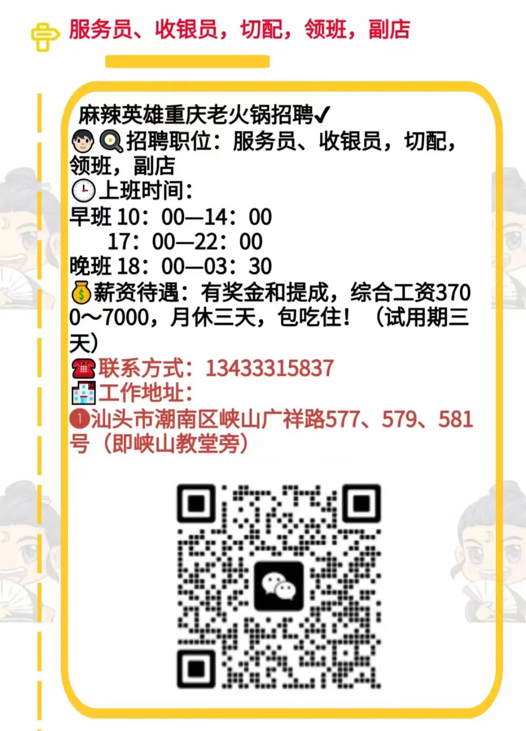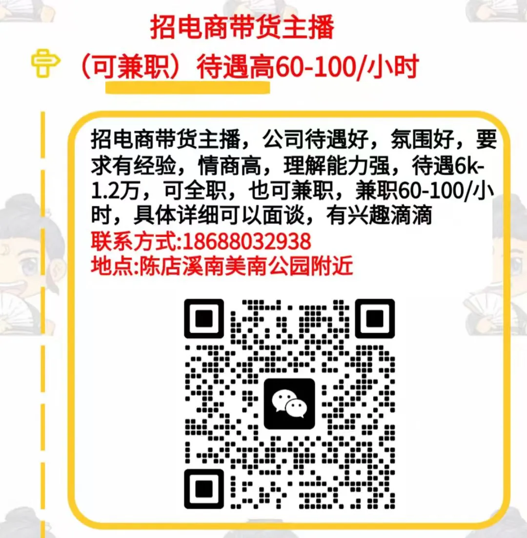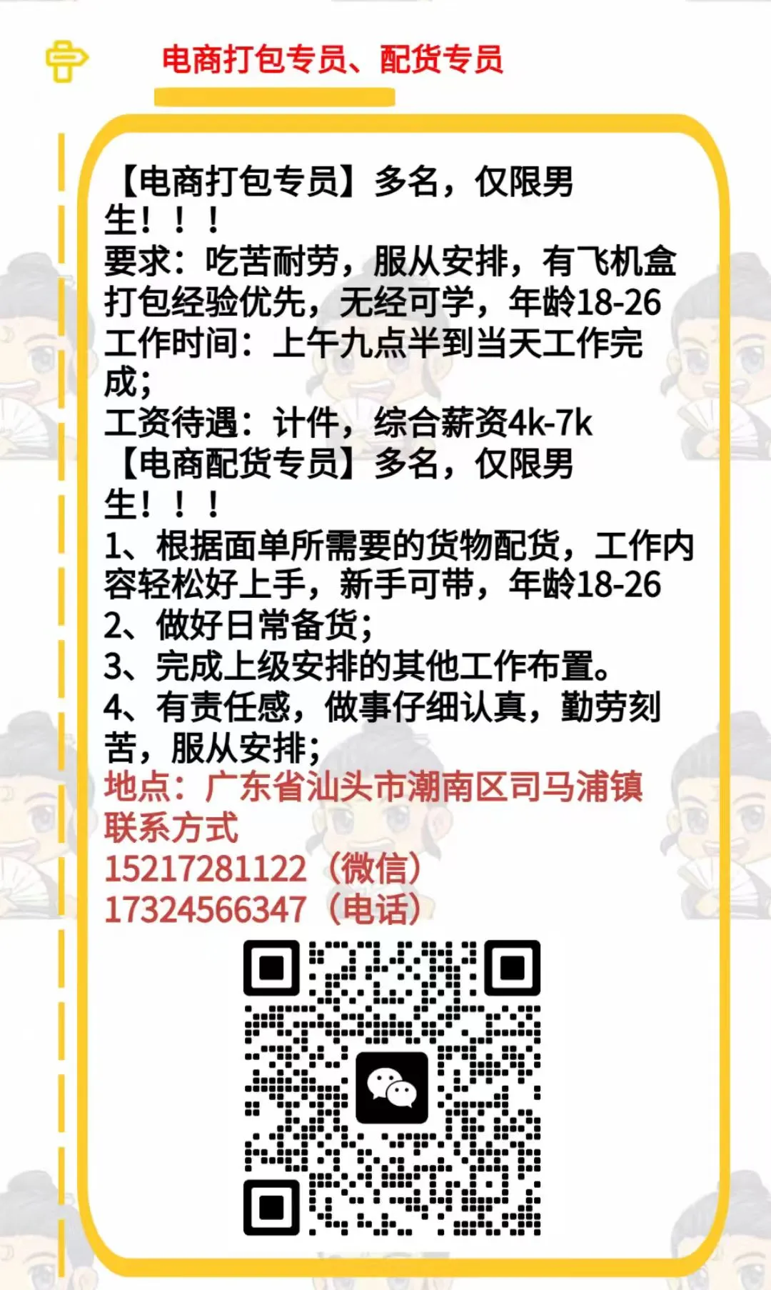 >1.17 潮南最新招聘!(新招电商带货主播(可兼职)待遇高60-100/小时电源厂、服务员、训练员、管理层、烫斗20名接侧骨封口加固定位...)