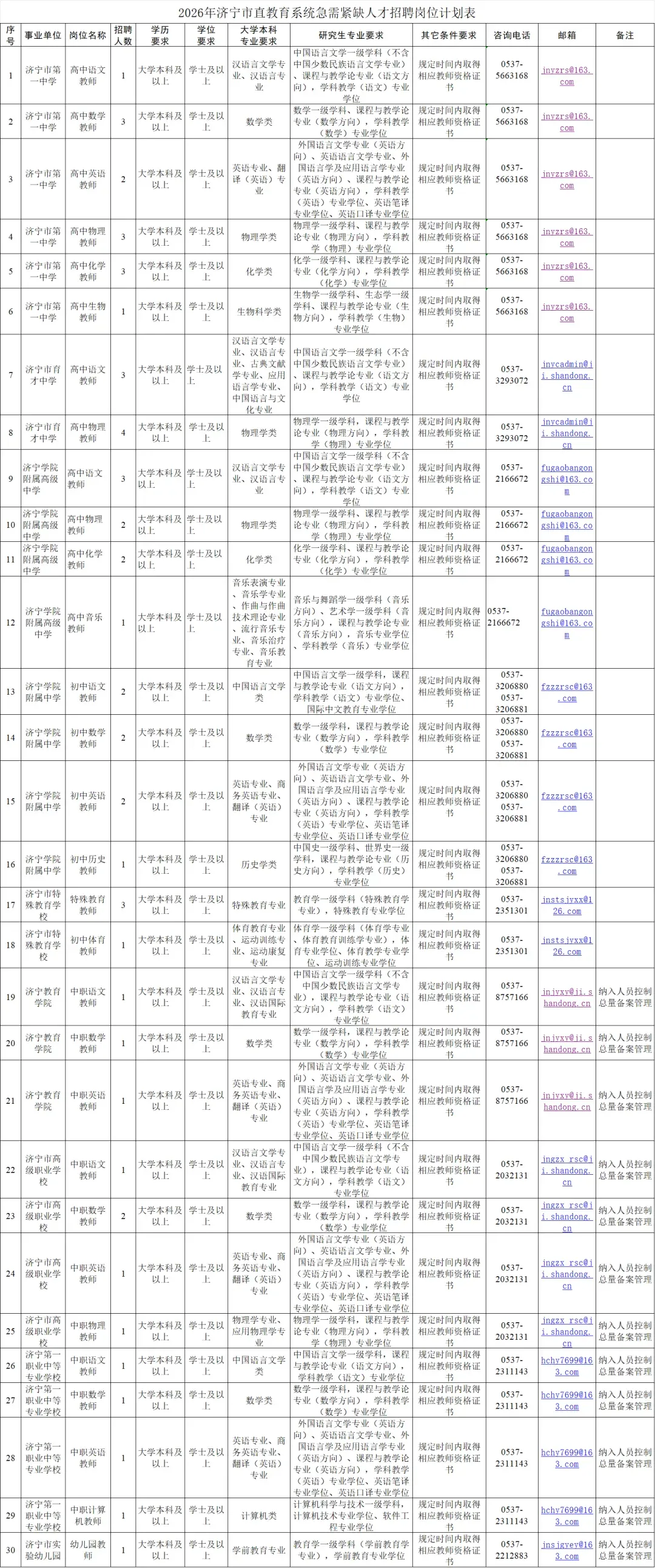 2026年济宁市直教育系统急需紧缺人才招聘公告(52名)
