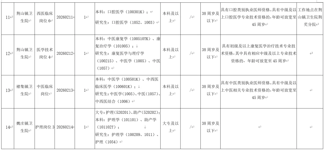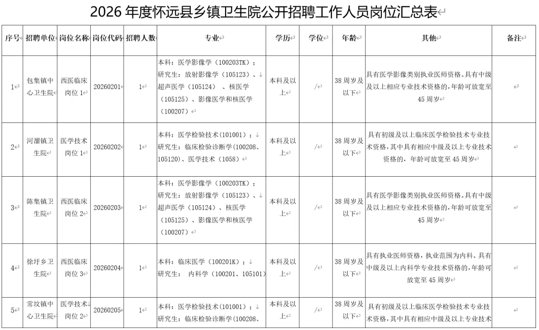 根据《事业单位人事管理条例》和《安徽省事业单位公开招聘人员暂行办法》等有关规定,经县委编委核准、县人力资源和社会保障局同意,现就2026年度怀远县乡镇卫生院公开招聘工作人员有关事项公告如下: