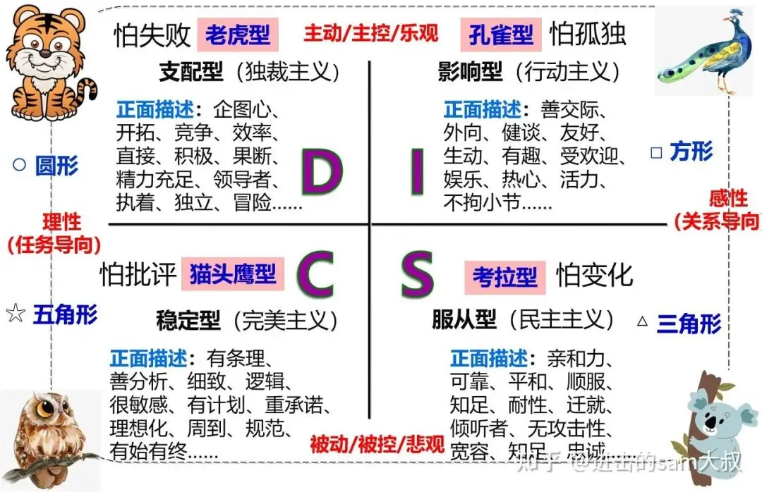 核心分类:以老虎、孔雀、考拉、猫头鹰、变色龙五种动物代表不同职业性格类型;