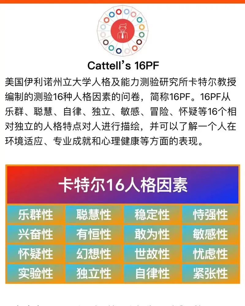 核心维度:涵盖乐群性、聪慧性、稳定性等 16 种人格因素;