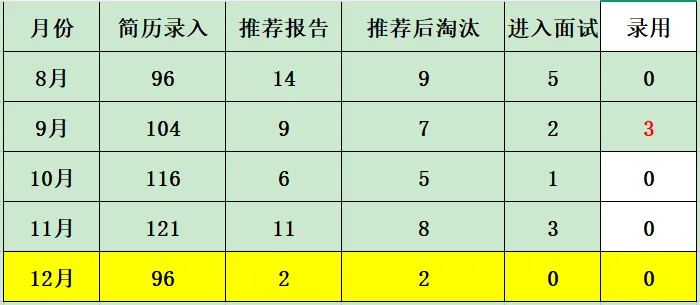 2025年12月soho猎头仍然是0单,迟来的总结,浅浅复盘一下。虽然都是0成单,但对比前几个月,12月数据全面下滑,只有2份推荐,且没有人进入面试。是倦怠了,还是已经无计可施没人推了,简历录入量下降,推荐报告也下降。2026年1月份也会是0单,因为前半个月跟猎头主管请假了(忙这边裁员的事),打算再继续请假到过年,没力气做猎头单。裁员这个事对所有人都是巨大的消耗,员工有自己的权益要维护(这很正常),我要承受这些情绪的黑洞,这是这个职位工作内容的一部分。说回12月0单,浅浅分析下2个原因:没有新职位+自身时间投入减少。新接的职位较少,仍然是原先9月、10月就在做的职位,市场上的人选被这么多猎头公司洗了好几个月,有合适的早就被录用了,越到后面越难找到人。甲方根据猎头反馈也调整过,有些要求也放宽了,但仍然没有人被录用。(传说中的硬骨头单)我自己时间精力投入也在减少,可能是沮丧吧,一直捞不到人。想想8月份的夏天,我干劲十足。那时候放暑假,孩子们都起的迟,我是早上6点就醒了,在客厅开电脑刷简历干活到7点,然后再洗脸刷牙打豆浆做早饭,吃完骑车去公司,开始干活一整天。晚上去公园走路完,回来还要再刷一会儿简历才去睡觉。现在不知道是不是因为冬天的原因,也是早上6点起,但是被闹钟叫起的,不像夏天是生物钟自己醒的。每天都是睡眠不足、活人微死的状态,多打两个招聘电话感觉快断气了。我要想办法解决没有新职位的问题,不能都等着猎头公司来分配,是不是自己也要去开发新客户。