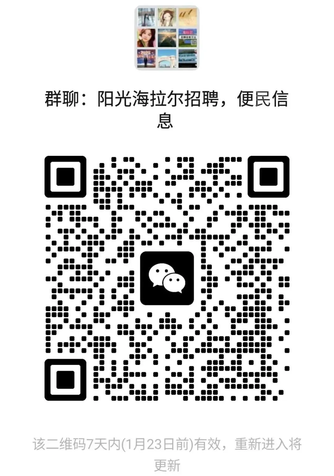 海拉尔尔招聘信息群。本地求职者进群,不允许重复进群。发广告的不允许进群温馨提醒平台发布的信息不代表平台官方信息,