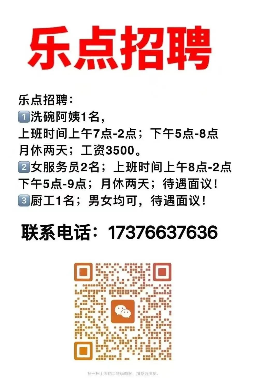 📣📣乐点招聘有意者请联系电话☎️17376637636