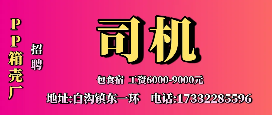 《复合厂招工》 复合海绵①普工2名:工资5000-6000②送货司机1名:工资6000-7000工资月结时间:早8 晚7:30工作踏实有工作经验者优先。 电话微信15230454262