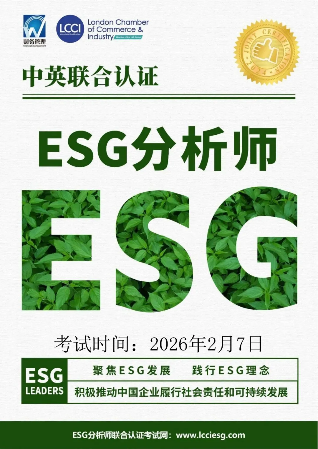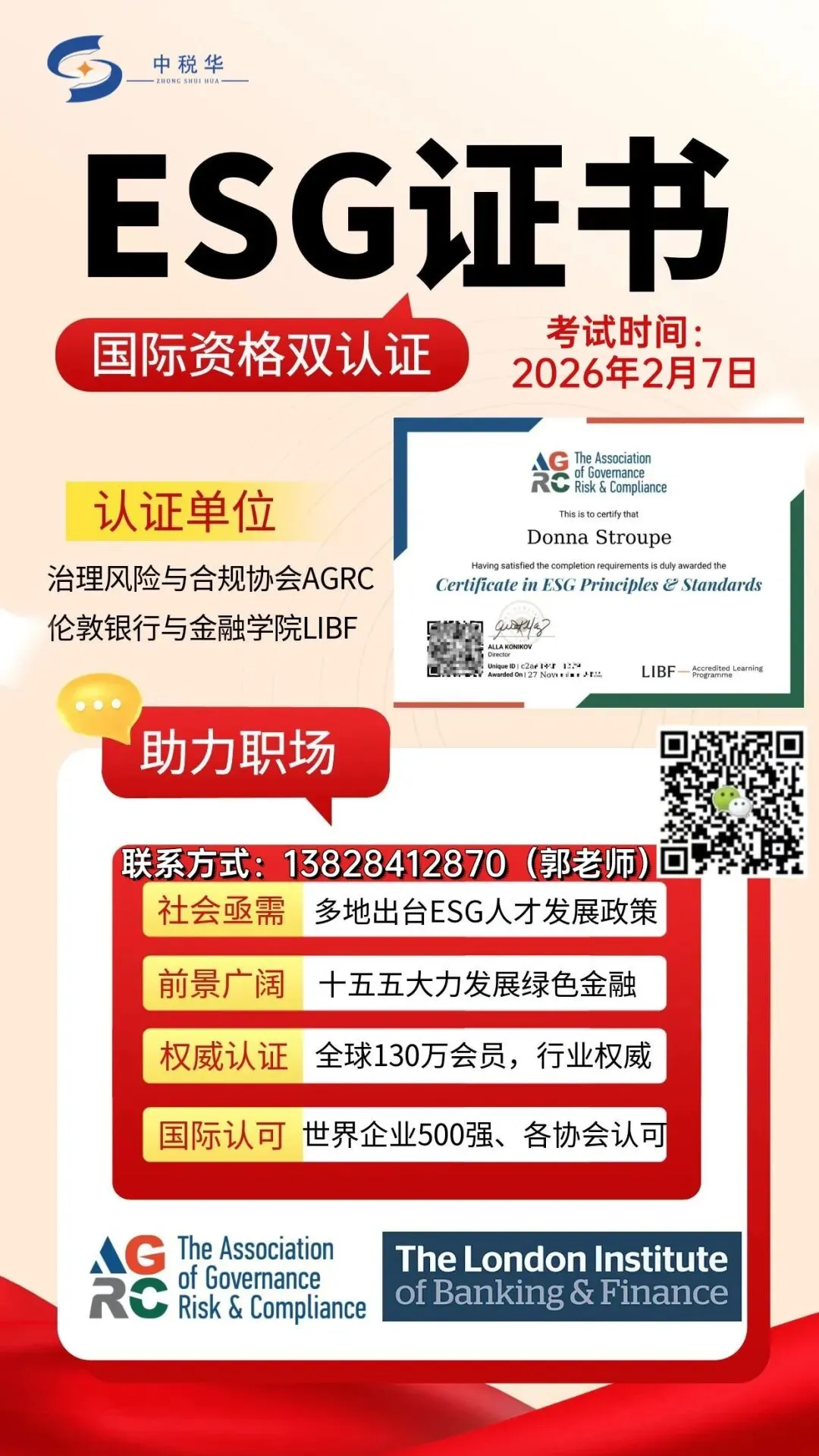 考试时间:2月7日(周六) ESG专业人才紧缺!考取中英双认证证书,提升企业信息披露与合规实践能力!