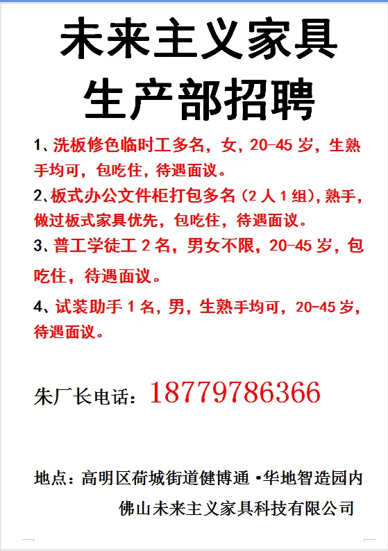 ⑱【南海九江家具厂】招聘文案