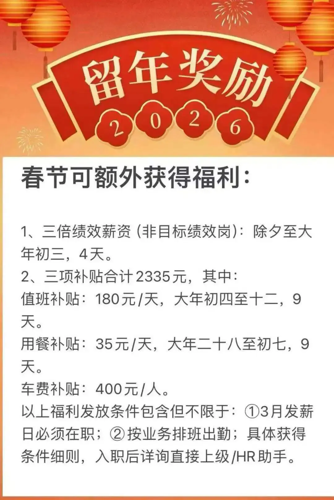 薪资待遇:空调车间,夜班补贴