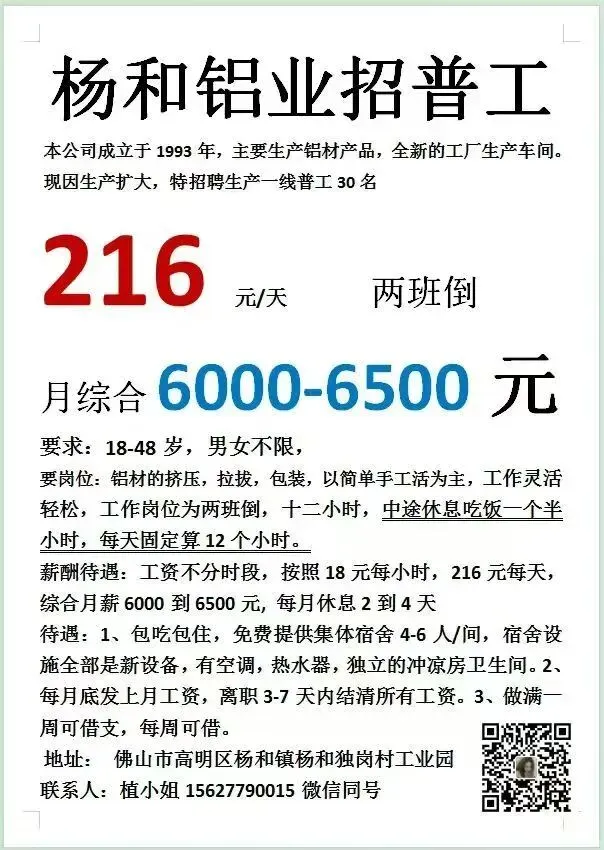 ⑲【高明尼教金属厂】招聘文案