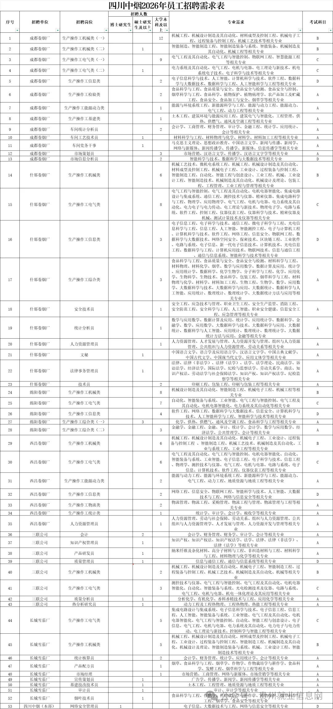 招聘公告在中国烟草人才招聘平台(http://www.tobacco.gov.cn)、四川中烟网站(http://scgy.tobacco.com.cn)以及部分高校网站发布公告。