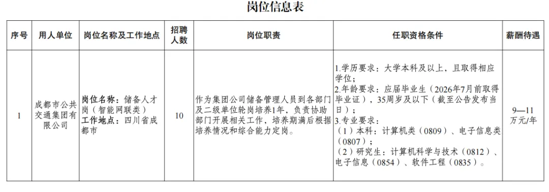 - 薪酬参考:部分岗位薪酬 9-11 万元 / 年,国企标准福利体系加持;