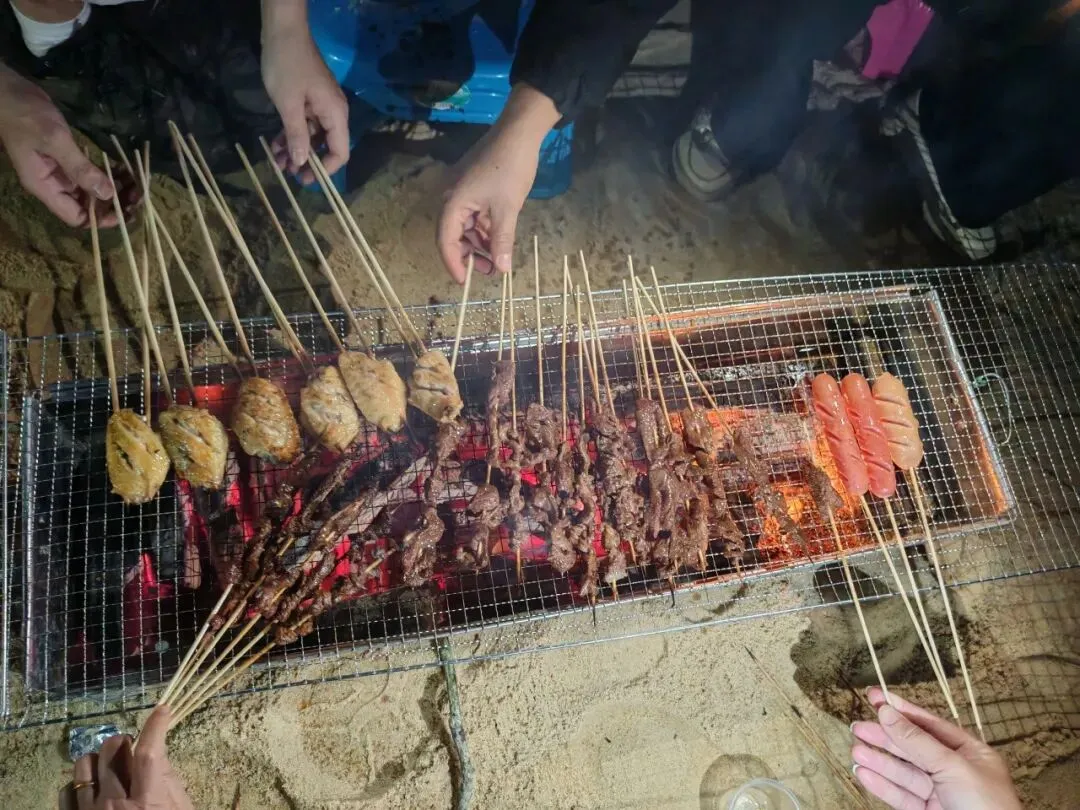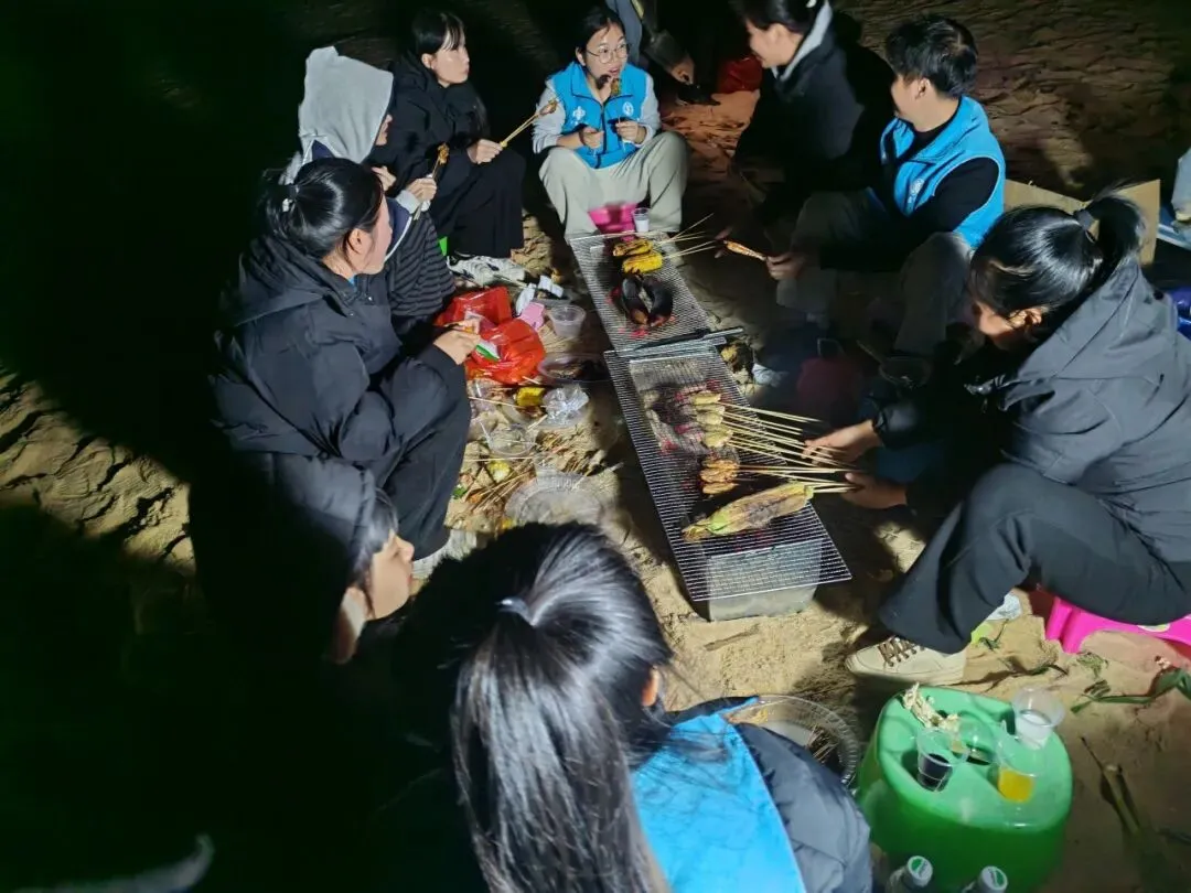 趣味游戏环节结束后,迎来了温馨的美食派对环节。社工们早已提前备好食材,炭火烧烤架、香气扑鼻的翁鸡依次就位。社工们分工协作,有的负责烤制食材,有的整理餐具,有的分享美食,现场俨然一幅热闹的家庭聚会画面。滋滋作响的烤肉、肉质鲜美的翁鸡,搭配各类蔬菜与饮品,让大家在味蕾的满足中彻底放松身心。用餐过程中,社工们围坐在一起,畅谈工作中的趣事与感悟,倾诉遇到的困惑与压力,伙伴们耐心倾听、真诚安慰,互相给予鼓励与建议。没有工作的束缚,没有身份的隔阂,大家在轻松的交流中疏导了负面情绪,感受到了团队大家庭的温暖与慰藉。