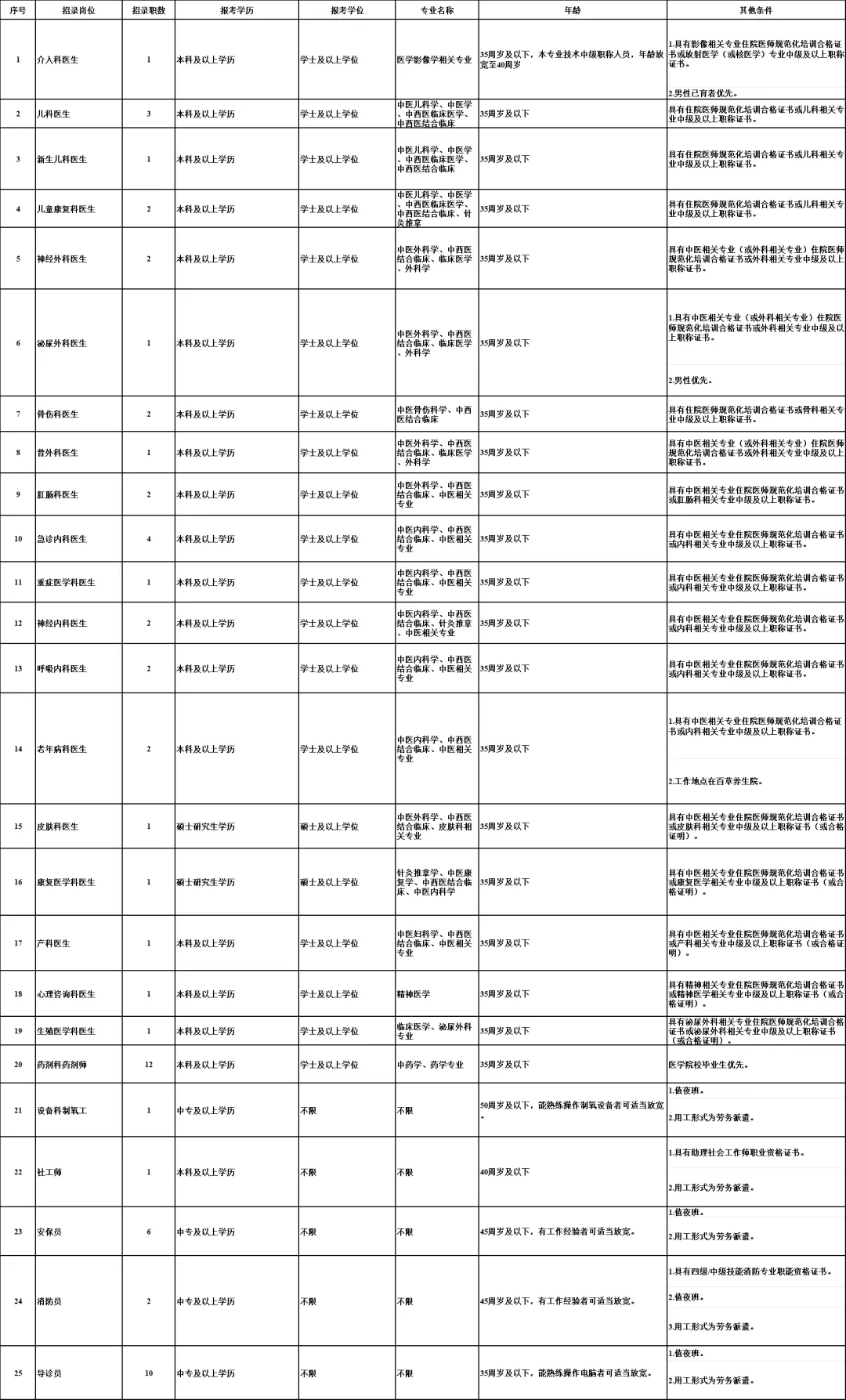 齐齐哈尔市中医医院是全省西部地区集中医、中西医结合医疗、保健康复、科研教学、医养结合、技术指导、咨询服务为一体,具有中医特色和优势的现代化大型综合性中医医院。医院科室设置齐全,技术力量雄厚,中医优势突出,专科特色明显,综合服务能力较强。因业务发展需要,依据《齐齐哈尔市中医医院招聘管理制度》,结合医院岗位需求实际,现面向社会公开招聘编外工作人员,具体公告如下: