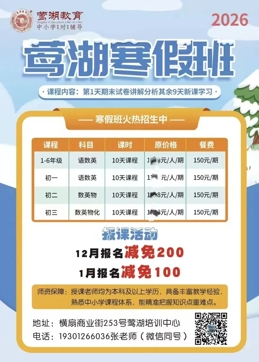 莺湖寒假班报名开启 | 早报享最大优惠!