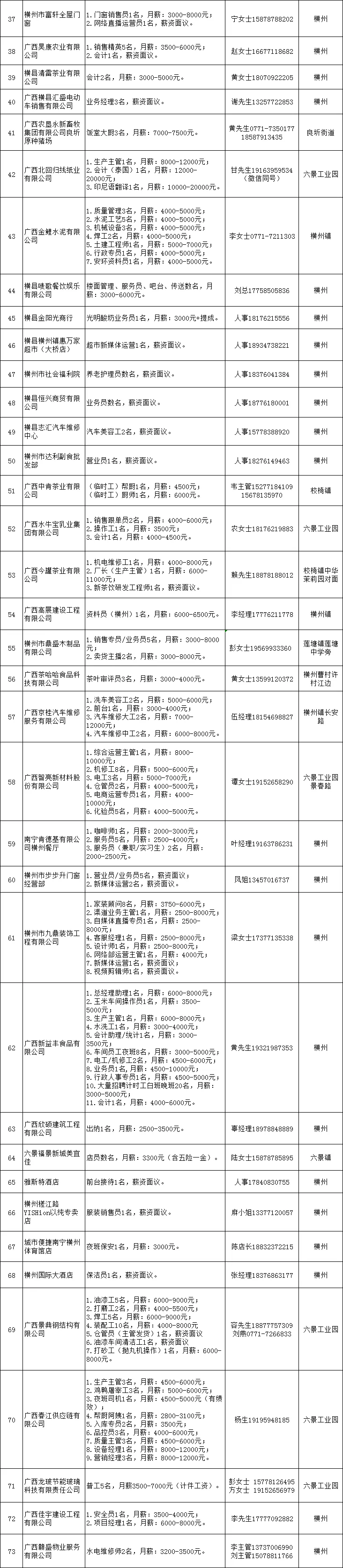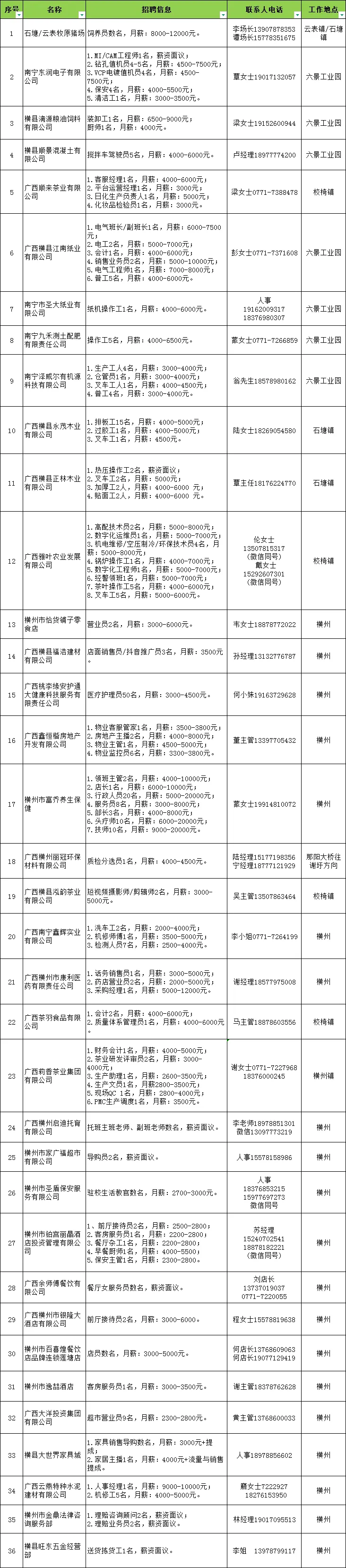 >横州今日招聘岗位更新