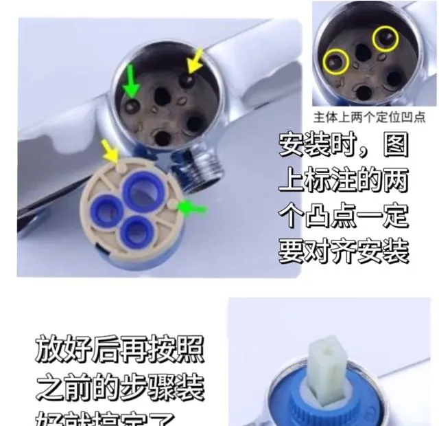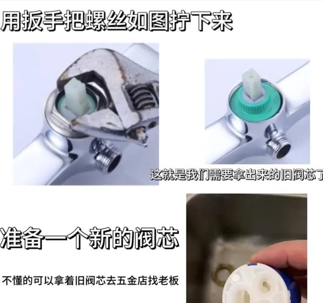 - 用扳手拧下旧阀芯,按原样换上新阀芯,对准凸点装回去就完事!